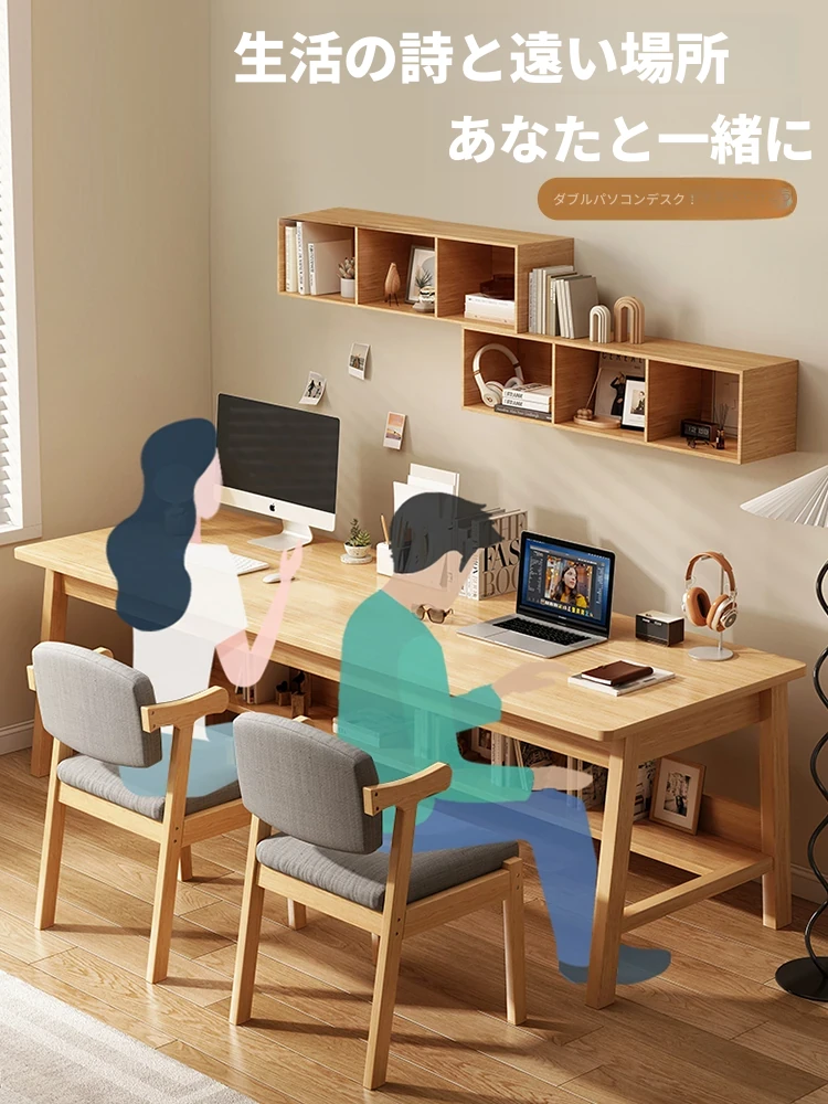 2人用シンプルデザインの長方形デスク - 壁際にぴったりフィット!狭いスペースに最適なスタイリッシュなオフィスデスク。家庭用や書き物にもおすすめ!