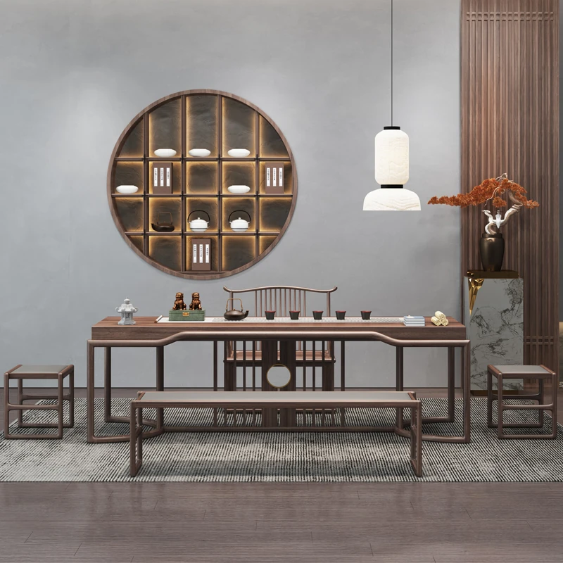 Elegant New Chinese Style Tea Table and Chair Set - Zen-Inspired Furniture for Tea Rooms and Tea Shops, Perfect for Relaxing Tea Ceremonies and Enjoying a Peaceful Tea Experience.