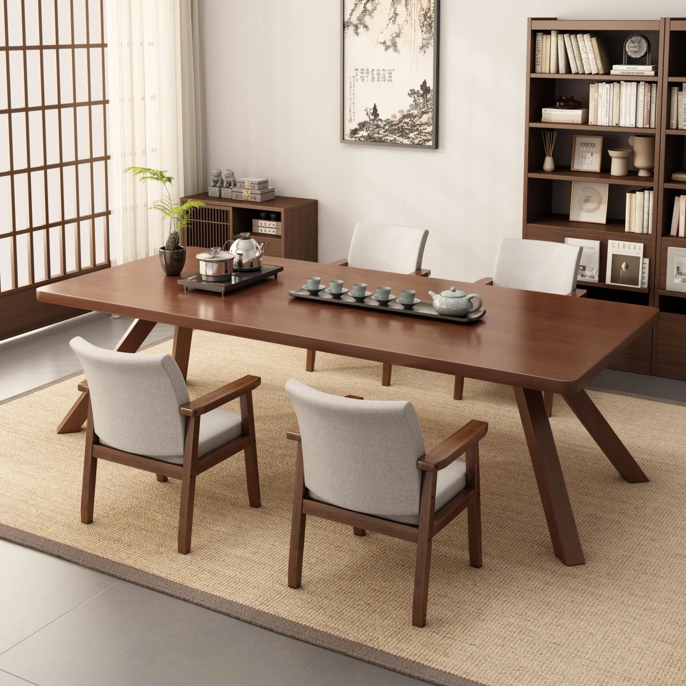 2025 New High-End Solid Wood Zhen-Style Walnut Tea Table - Elegant Tea Station for Home and Office, Perfect for Tea Brewing in Living Room or Study