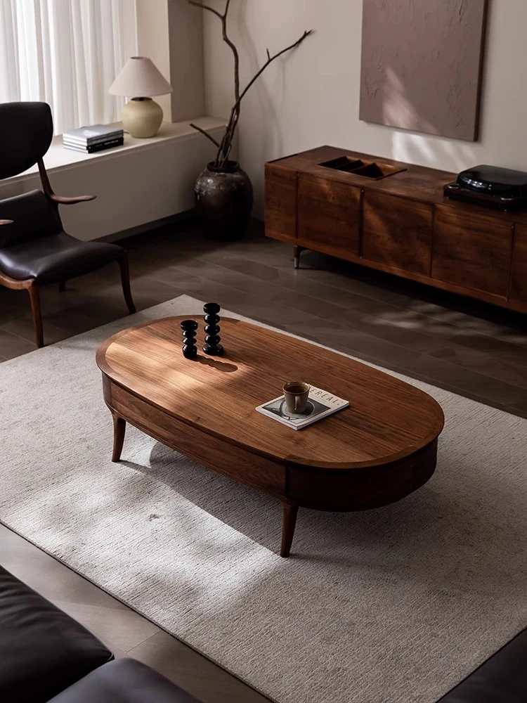 Elegant New Chinese Style Walnut Coffee Table - Minimalist Luxury for Villas and Living Rooms, Solid Wood Oval Design, Vintage Charm for Office Spaces