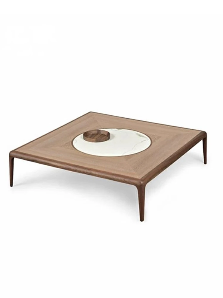 Modern Chinese Walnut Coffee Table - Minimalist Square Design with Rock Panel, Perfect for Villas and Spacious Apartments, Crafted from Solid Wood Furniture