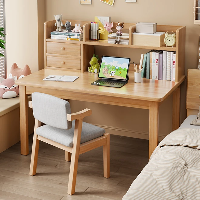 Solid Wood Desk and Bookshelf Combo - Multi-Functional Study Table for Home, Bedroom, and Students - Ideal for Writing, Studying, and Working with a Simple Design