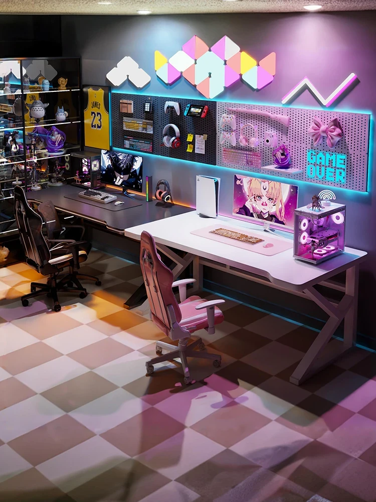 Double Gaming Desk for Couples - Stylish Home Office or Bedroom Workstation, Perfect for Gaming and Study, Space-Saving Dual Table Set for a Modern Aesthetic