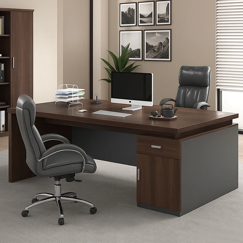 Modern Minimalist Office Desk and Chair Set for Employees – Stylish Dual-Person Workstation, Perfect for Bosses and Computers, Ideal for Professional Spaces