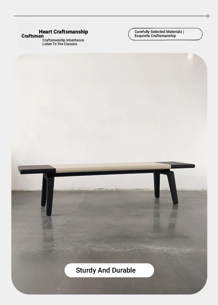 Nordic Minimalist New Chinese-Style Bedroom Bench for Hotels - Solid Wood Long Bench for Living Room, Elegant Entryway Shoe Changing Stool, Perfect for Your Stylish Space
