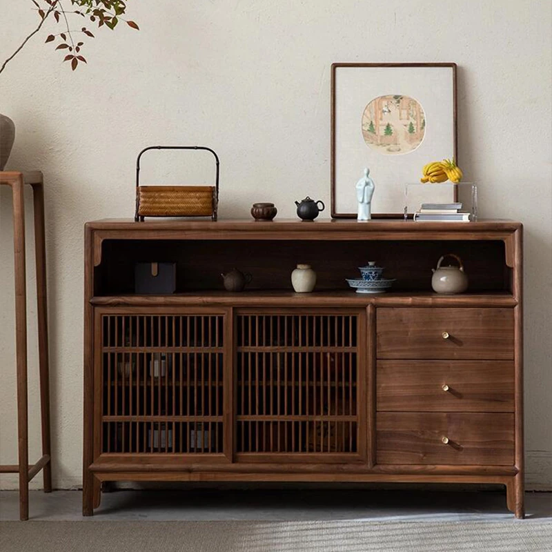 Modern Luxury Walnut Wood Entryway Storage Cabinet - Stylish Solid Wood Sideboard for Dining Room - New Chinese Style with Ample Storage Space