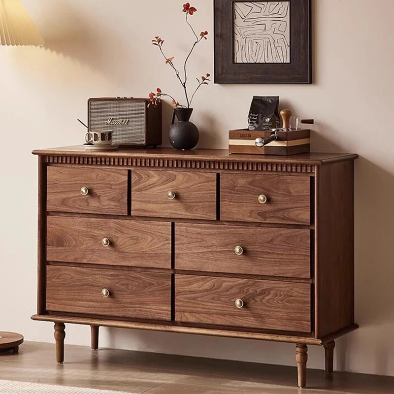 2025 New Chinese Style Dresser - Modern Minimalist Solid Wood Six-Drawer and Seven-Drawer Storage Cabinet for Living Room - Perfect for Organizing Your Space