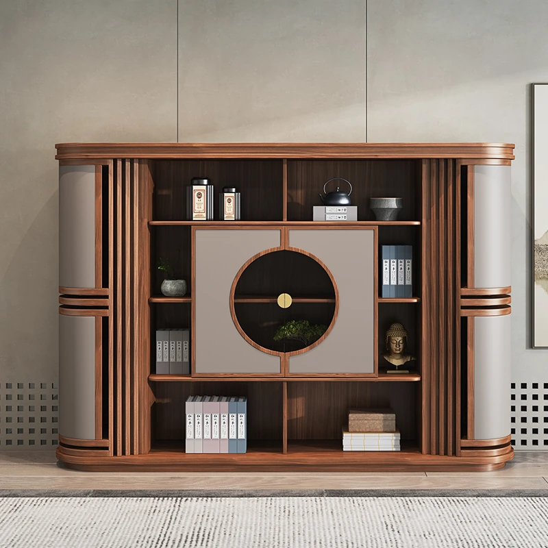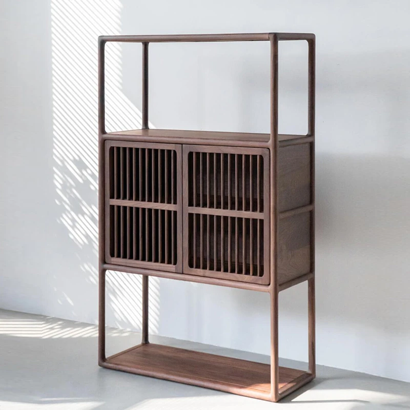 2025 New Arrival: Minimalist Chinese-Style Solid Wood Display Cabinet for Tea, Walnut Multi-Functional Tea Rack, Perfect for Tea Rooms and Showcasing Tea Cakes.