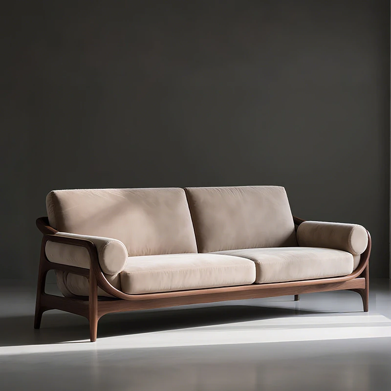 2025 New Chinese Style Solid Wood Sofa - Modern Minimalist Walnut Upholstered Sofa for Living Room, Exuding Luxury and Sophistication