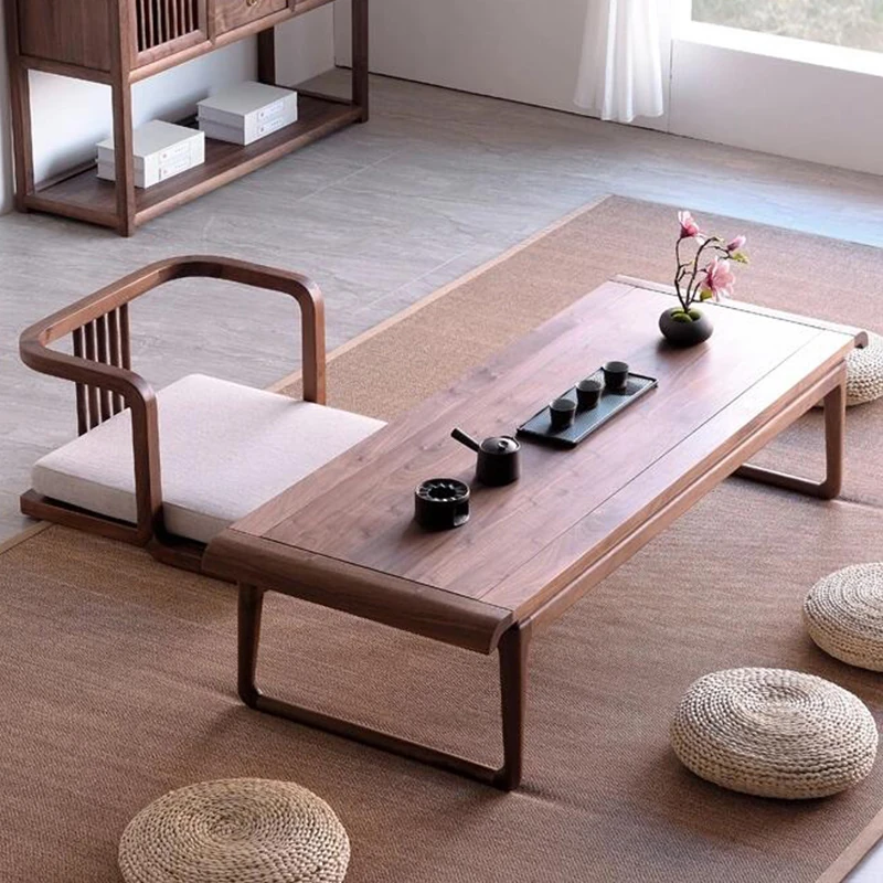 2025 New Compact Walnut Wood Balcony Tea Table – Stylish Chinese and Japanese Tea Set for Home Use, Perfect for Tatami Spaces and Tea Brewing