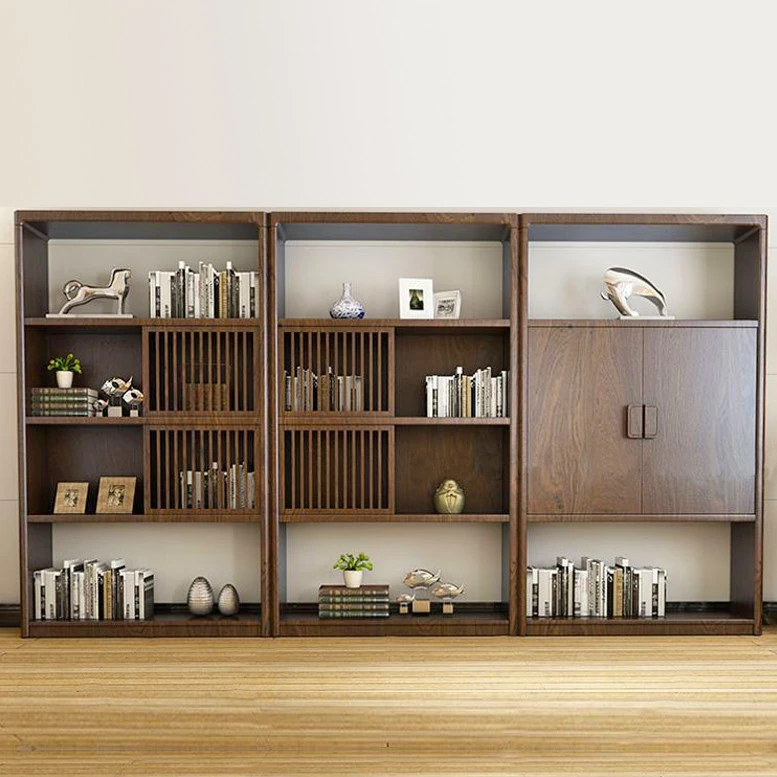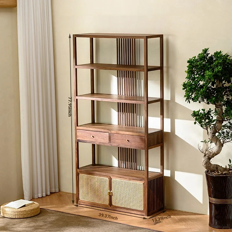 Modern Chinese Style Solid Wood Bookshelf & Storage Cabinet - Walnut Display Rack for Tea Room, Simple and Elegant Home Decor
