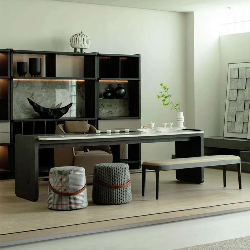 2025 New Italian Solid Wood Rock Plate Tea Table - High-End Luxury Modern Walnut Tea Set for Exquisite Tea Brewing Experience