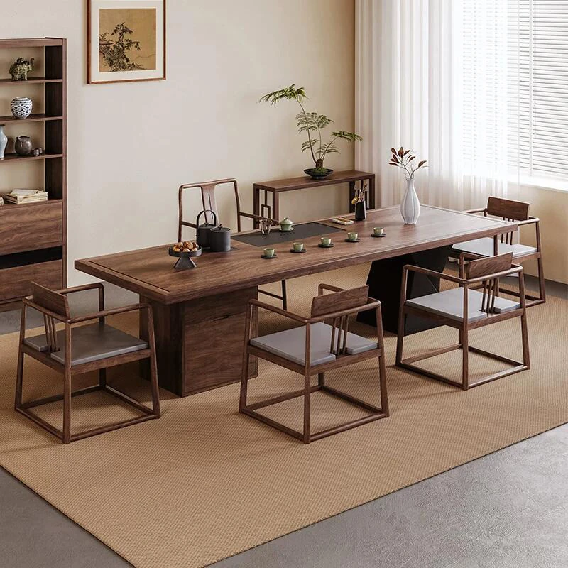 Dual-Use Solid Wood Tea and Dining Table - New Chinese Style Walnut Tea Brewing Table for Office and Living Room, Perfect for Home Use