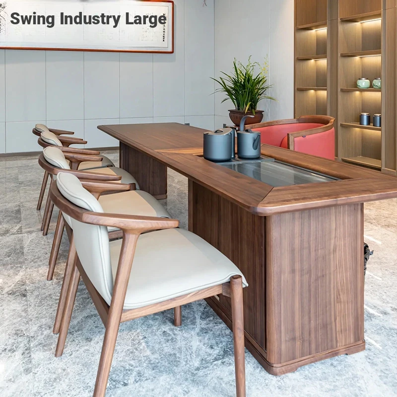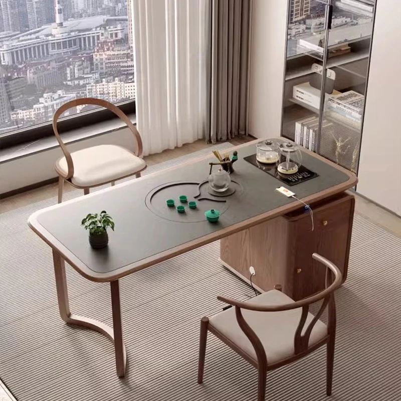 2025 New High-End Integrated Tea Table with Built-in Water Kettle, Modern Walnut Wood Design for Office Tea Brewing
