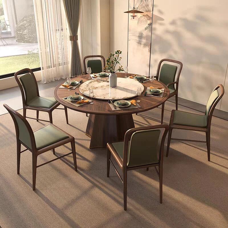 2025 New Modern Minimalist Solid Wood Dining Table with Rock Slab - Walnut Finish, Perfect for Stylish Home Dining and Living Rooms