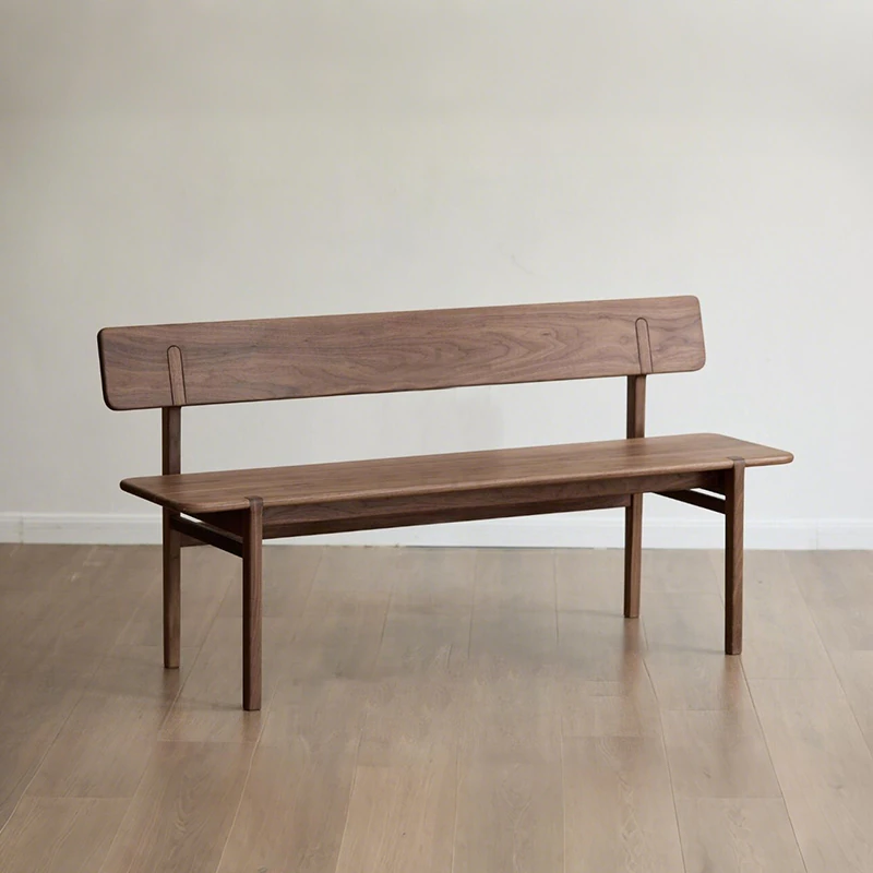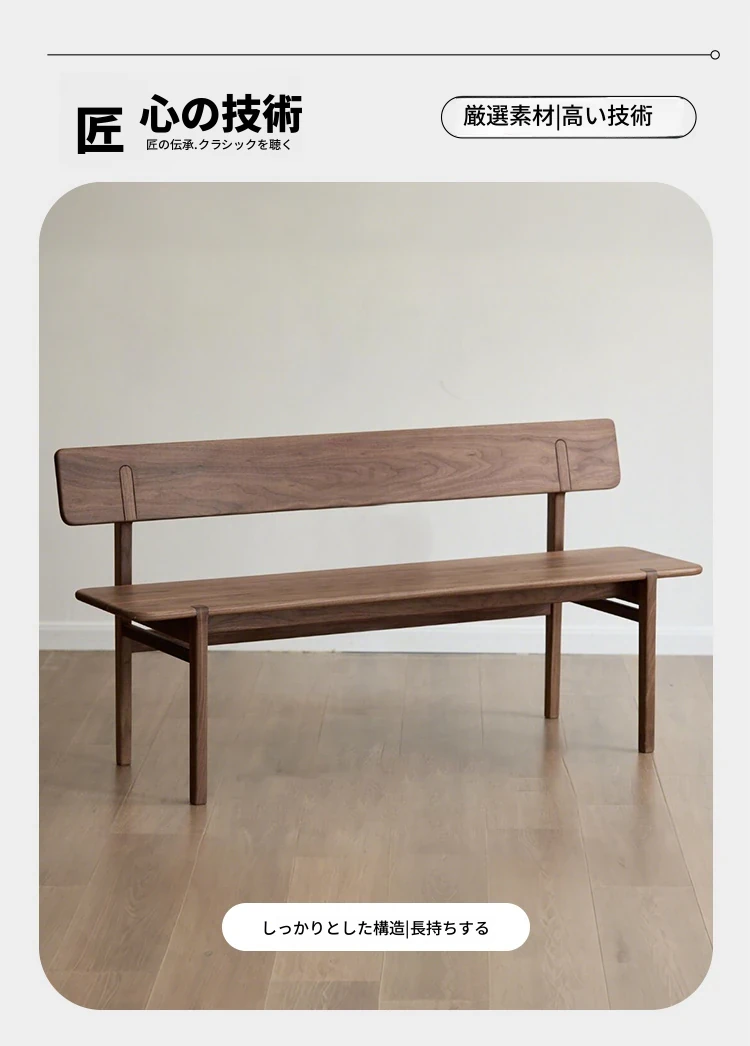 新中式デザインのベンチ - モダンなウォールナット製、シンプルでスタイリッシュな寝室用ベンチ。ダイニングテーブルにもぴったりな実木のロングベンチで、あなたの空間をエレガントに演出します!