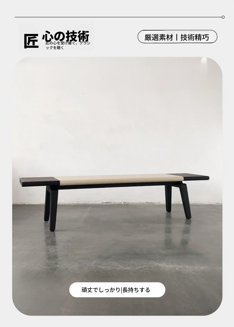 北欧風シンプルな新中式スタイルの民宿用ベッドエンドベンチ - リビングにもぴったりな無垢材ロングベンチ!新中式の玄関や衣服収納スペース、靴を履くときにも最適です。