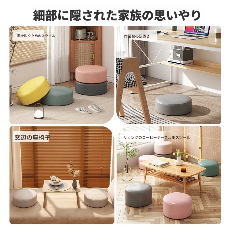 クッション付き小さなスツール|家庭用・リビングに最適な低めの椅子|ソファやコーヒーテーブルにぴったり|おしゃれな革製の座布団|快適な座り心地でくつろぎのひと時をお届けします!