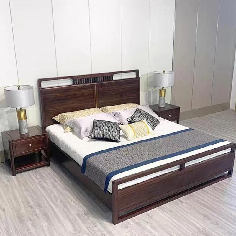 2025年新作!新中式デザインの高級感あふれる無垢材ブラックウォールナット製モダンシンプルダブルベッド。リビングルームにも最適、主寝室にぴったりの一品!