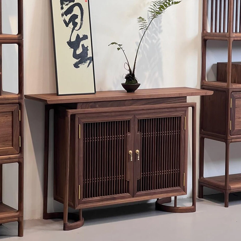 新中式無垢材のウォールキャビネット、ウォールナットの禅スタイルダイニングサイドボード、シンプルモダンなリビングルーム収納キャビネット。スタイリッシュで機能的、あなたの空間に調和をもたらします!