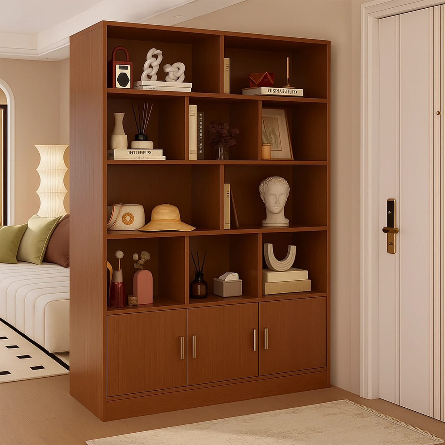 玄関収納とリビングの仕切りを兼ね備えたスタイリッシュなフロアワインキャビネット - 入り口にぴったりの収納力抜群のパーテーションキャビネット!