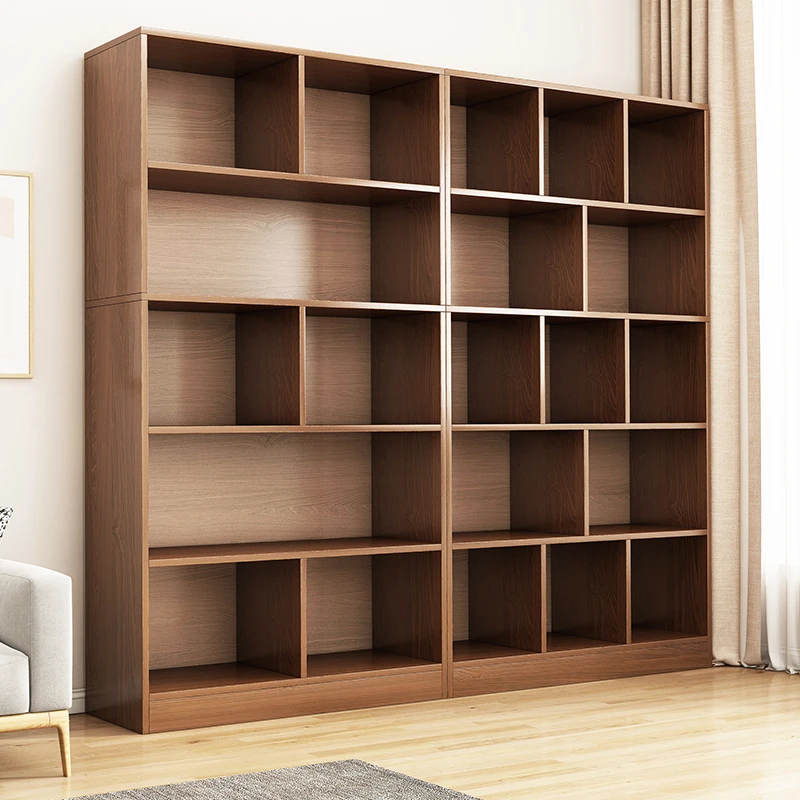 壁に寄せられる落地式書棚収納ラック - ホコリを防ぎ、リビングにぴったりな多機能キャビネット。家の収納に最適な低型書棚、グリッドデザインでスッキリ整理!
