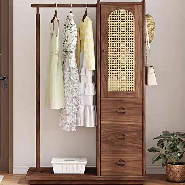 新中式スタイルの無垢材コートラック2025年新作!モダンでシンプルなデザイン、リビングにぴったりなウォールハンガー、ウォルナット仕上げの収納ラック。おしゃれで実用的なインテリアを演出します!