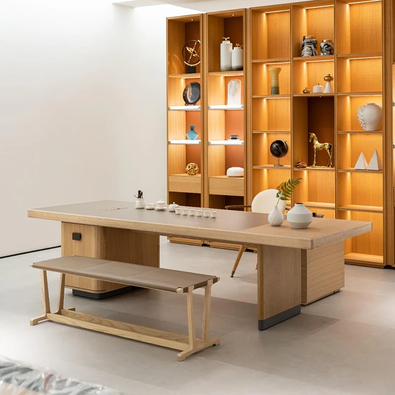 2025年新作!モダンでシンプルな新中式無垢材茶卓 - ホワイトアッシュ製のティーテーブルで、リビングルームにぴったり。おしゃれなデザインで、心地よいお茶の時間をお楽しみください!