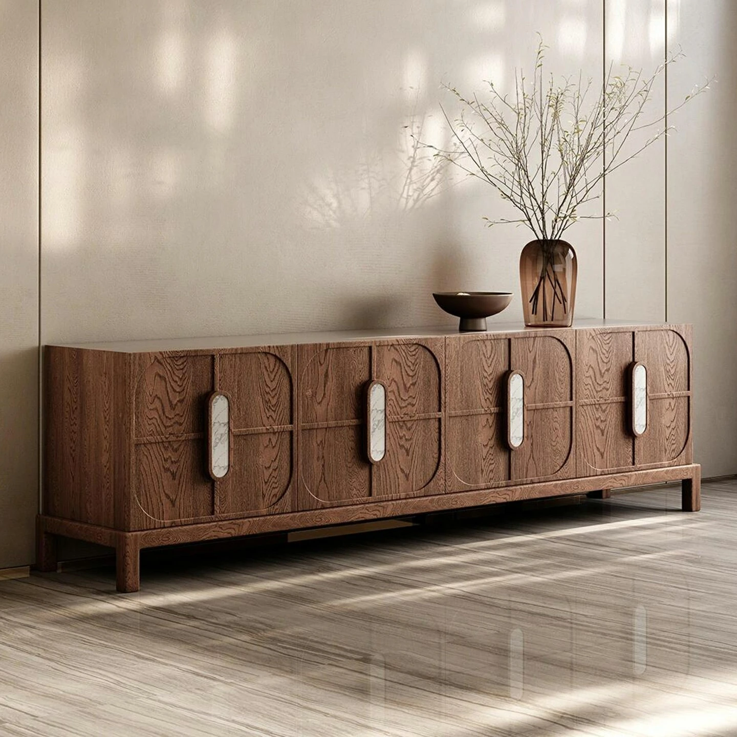 新しい中式デザインの無垢材サイドボード2025年モデル!現代的なラグジュアリー感が溢れるリビングにぴったりなウォールナット製の収納キャビネット。家族の思い出を彩るスタイリッシュな一品をお見逃しなく!