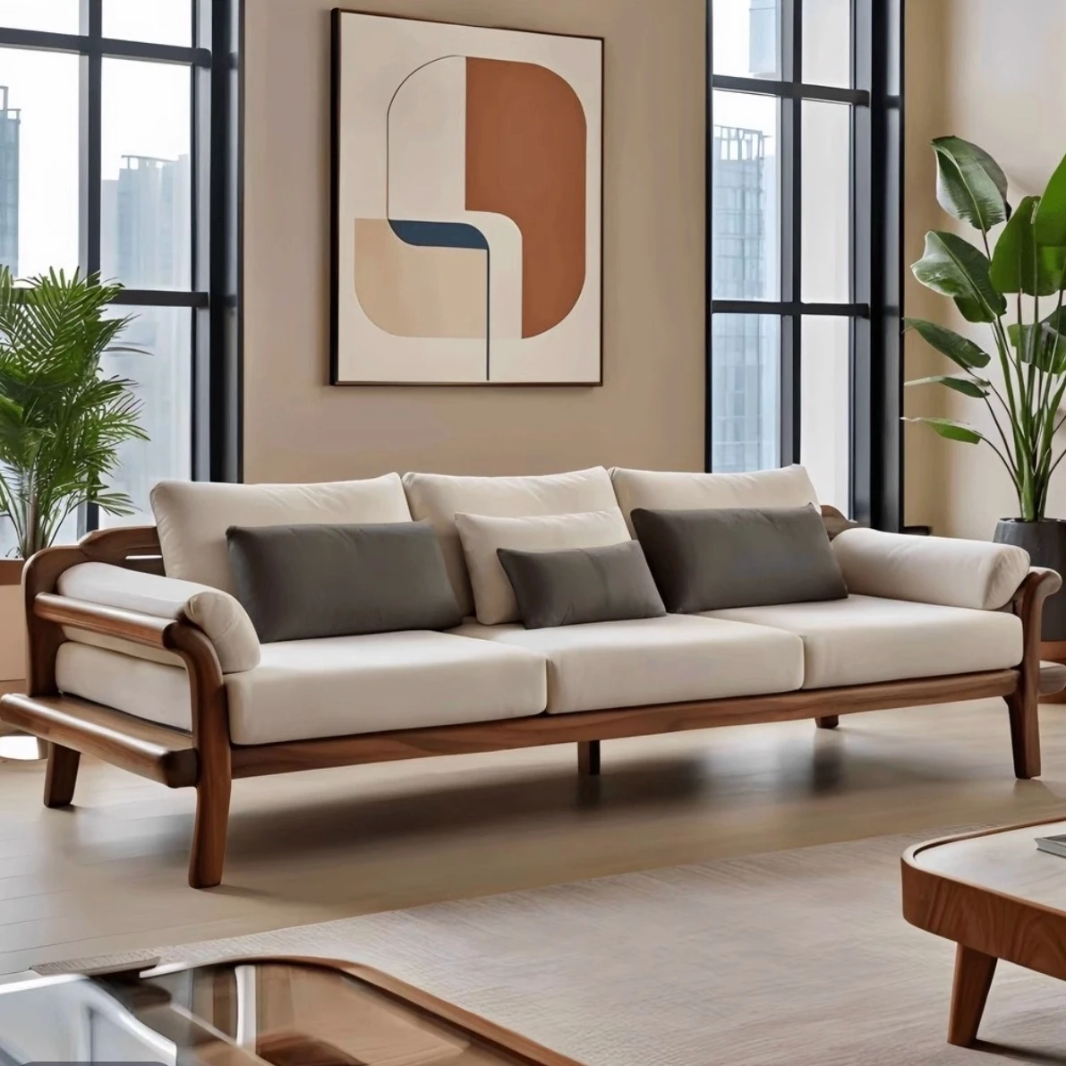 新中式2025年モデル!ウォールナットのシンプルデザインソファ。リビングやオフィスに最適な直線的な天然木ソファで、スタイリッシュな空間を演出します。快適さと美しさを兼ね備えた一品!