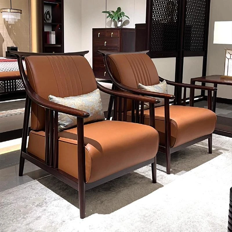 新中式高級感あふれる無垢材ウィンターウォルナット製シングルソファチェア - バルコニーでのリラックスタイムに最適なラウンジチェアで、贅沢なひとときをお楽しみください。