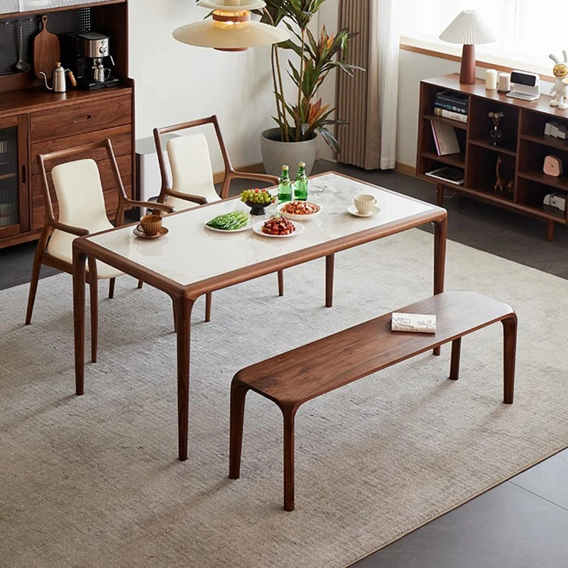 新中式デザインの小型家用実木ダイニングテーブル - 軽やかで贅沢、シンプルでモダンなロングテーブル、2025年新作!ウォールナットと岩板が融合した美しさをお楽しみください。