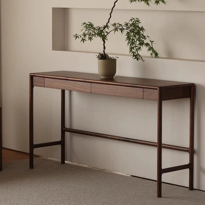 新中式デザインの高級感溢れる無垢材玄関テーブル - ドア正面にぴったり!ウォールに寄せて置ける、上質なウォールナット材使用のラグジュアリーな廊下用家具。あなたのエントランスを格上げします!