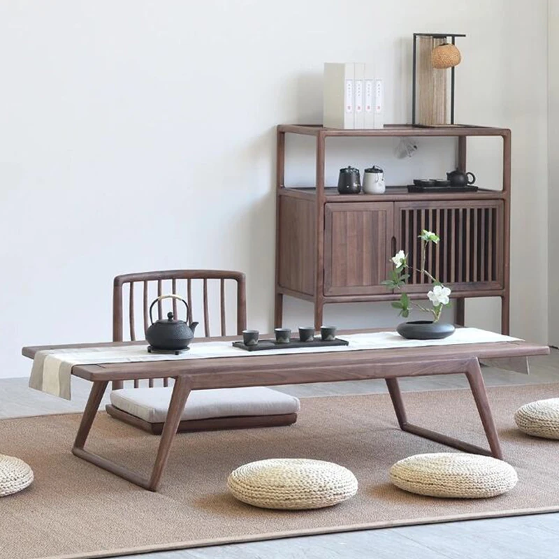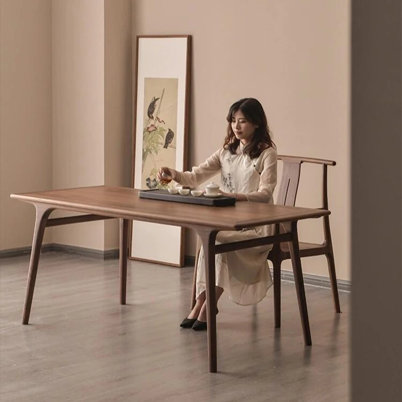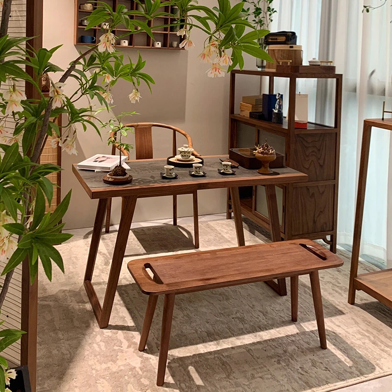 新中式の実木製茶卓 - モダンなリビングにぴったりな高級くるみ材使用のシンプルで洗練されたお茶テーブル。心を落ち着ける禅の雰囲気を楽しみながら、家庭でのティータイムを特別なものに。