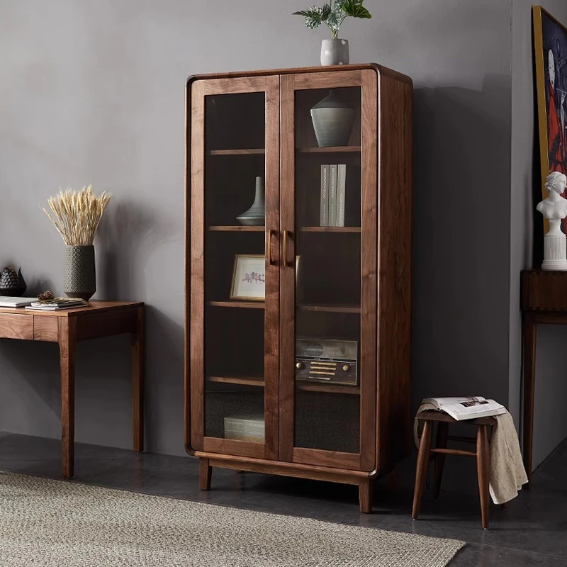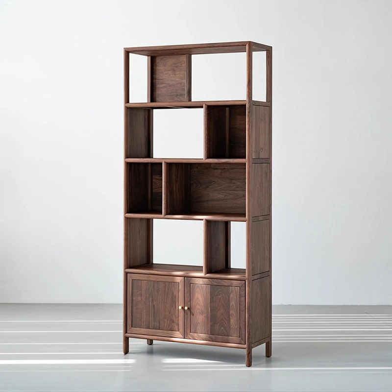 新中式スタイルの博古架2025年新作!モダンでシンプルなリビング用の天然木製ディスプレイキャビネット、ウォールナット材使用。おしゃれな本棚として、あなたの空間を格上げします!