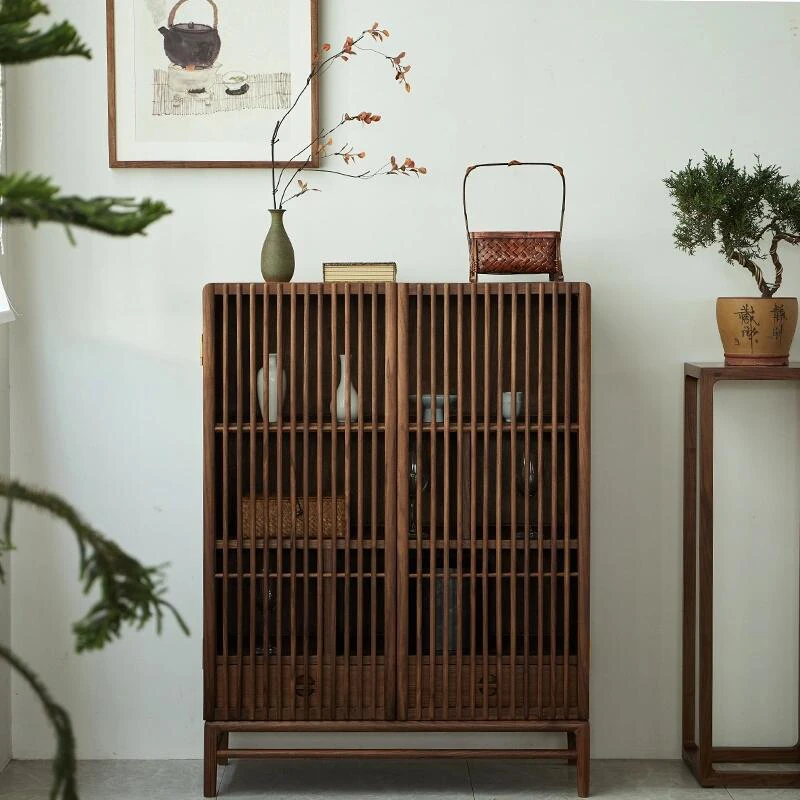 新中式の高級感あふれる無垢材収納キャビネット - おしゃれなウォールナット製の玄関収納&ダイニングサイドボード。モダンで洗練されたデザインが、あなたのインテリアを一層引き立てます。