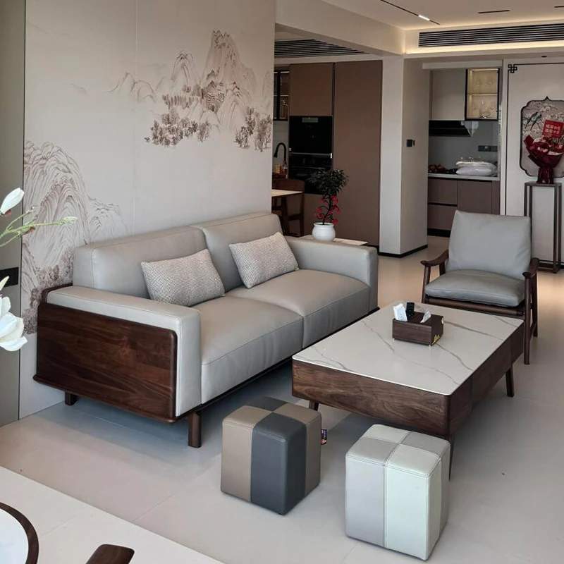 2025年新作!モダンでシンプルなレザーソファ - ウォールナットの軽やかさと高級感を兼ね備えた本格的な新中式デザイン。リビングルームをスタイリッシュに演出します。