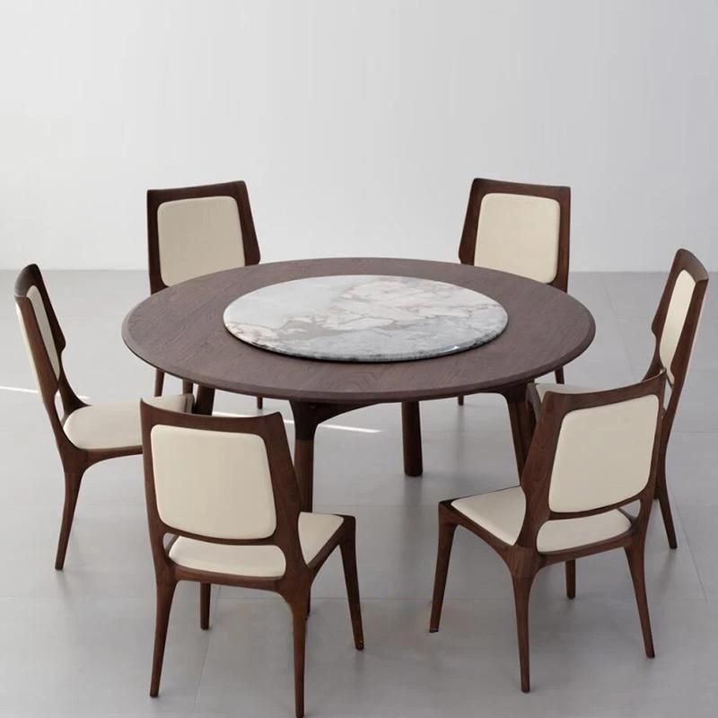 新中式スタイルのラグジュアリー胡桃材サークルダイニングテーブル - モダンな無垢材の円形テーブル、シンプルでエレガントなリビングルーム用、家族の集いに最適!