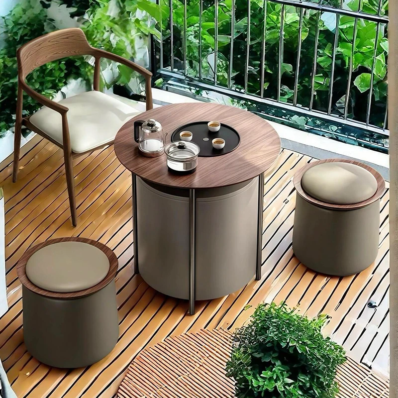 新中式デザインのバルコニー用簡易茶卓2025年新作!小型のくるみ材製、コンパクトな家用茶台で、限られたスペースでも優雅なティータイムを実現します。あなたの生活空間にぴったりの一品です!