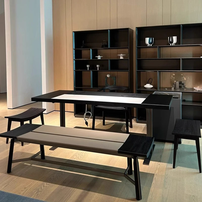 高級感溢れる現代的な岩板茶卓セット|オフィスやリビングに最適な実木製のティーテーブル|贅沢なひとときを実現するための高端茶台